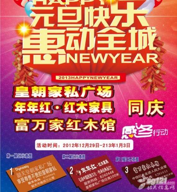 元旦快樂 惠動全城 皇朝家私廣場 年年紅.紅木家具 富萬家紅木館 三店同慶 活動時間:2012年12月29日--2013年1月3日
