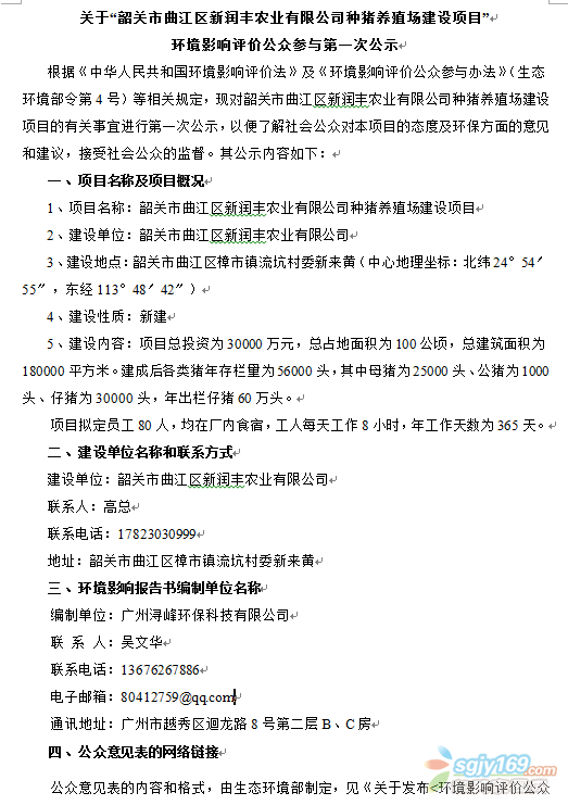 正文摘要:關(guān)于“韶關(guān)市曲江區(qū)新潤豐農(nóng)業(yè)有限公司種豬養(yǎng)殖場建設(shè)項(xiàng)目”環(huán)境影響評價公眾參與第一次公示 |